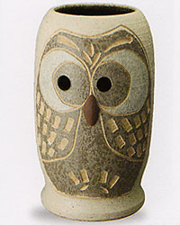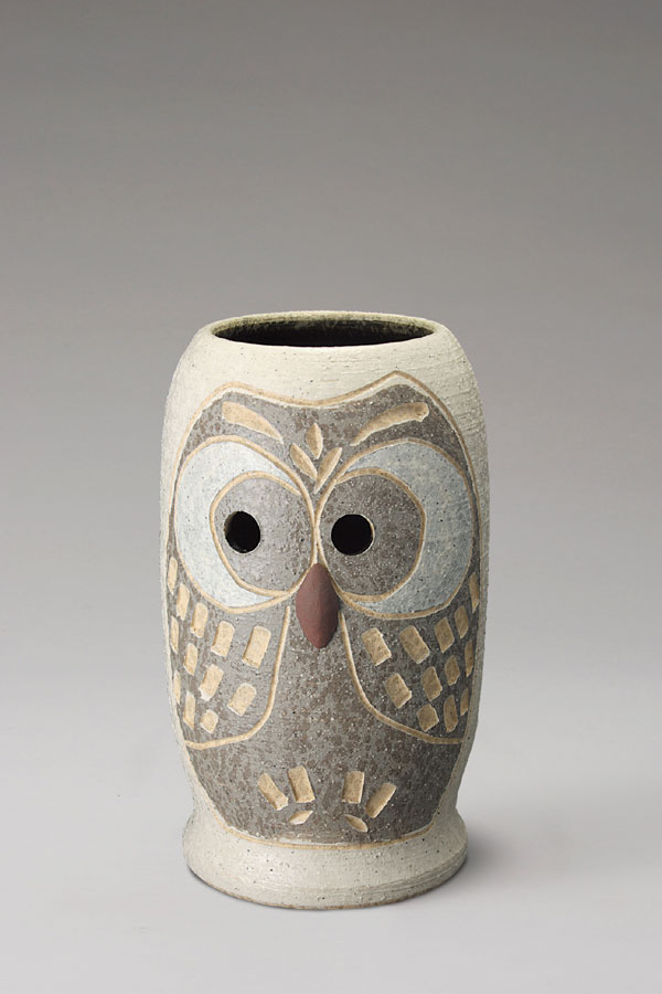 信楽焼 ふくろう彫傘立て(ホワイト)