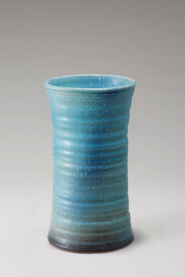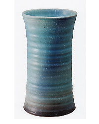信楽焼 ブルーガラス鼓型傘立て