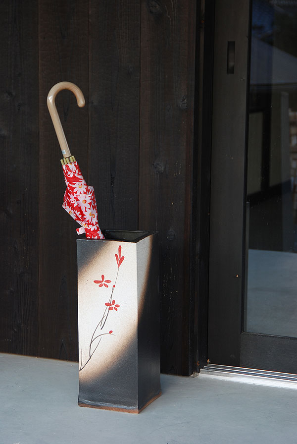 信楽焼傘立て 赤絵付角型傘立て