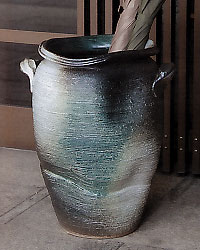 信楽焼 青窯変壷型傘立て