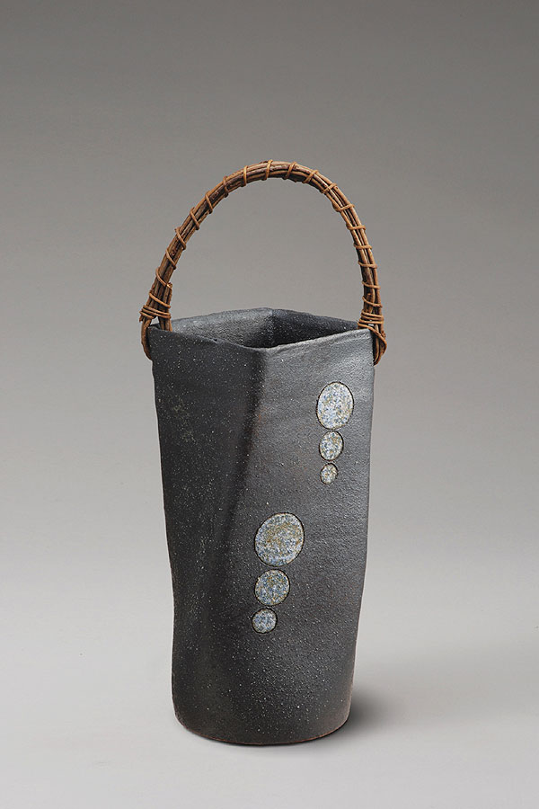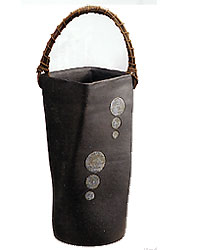信楽焼傘立て 黒釉丸紋つる付傘立て