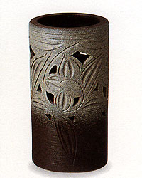 信楽焼 茶窯変唐草彫傘立て