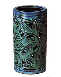 信楽焼 織部唐草彫傘立て