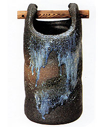 伝統的な信楽焼の傘立てです☆青い釉薬が土の色合いと融合して高級感を演出しています♪手桶付なので持ち運びも簡単です☆