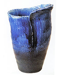信楽焼 青ガラスひねり傘立て