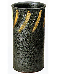 信楽焼 黒スパタ金彩傘立て