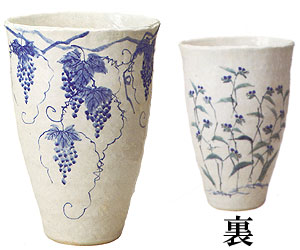 信楽焼 つゆ草ぶどう絵手びねり傘立て