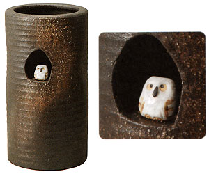 ぽっかりと空いた窓からかわいらしいふくろうが顔を出しています☆