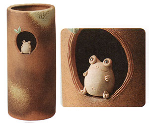 信楽焼 火色小窓蛙傘立て