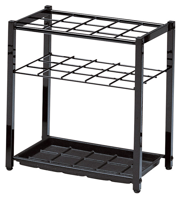 シンプルなレインラック♪シックなブラック。仕切りが2個付いているので傘が安定します。業務用として開店祝いや開業祝いなどの贈り物にも愛用されています☆