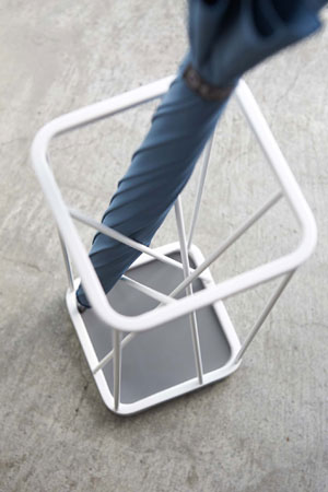 立体的に交差する線が9つの仕切りとなって傘をホールド。現代アートのような存在感です。 |