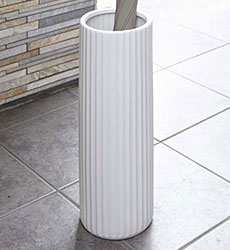 玄関先をモダンに演出する上品なスリム陶器傘立て。 |